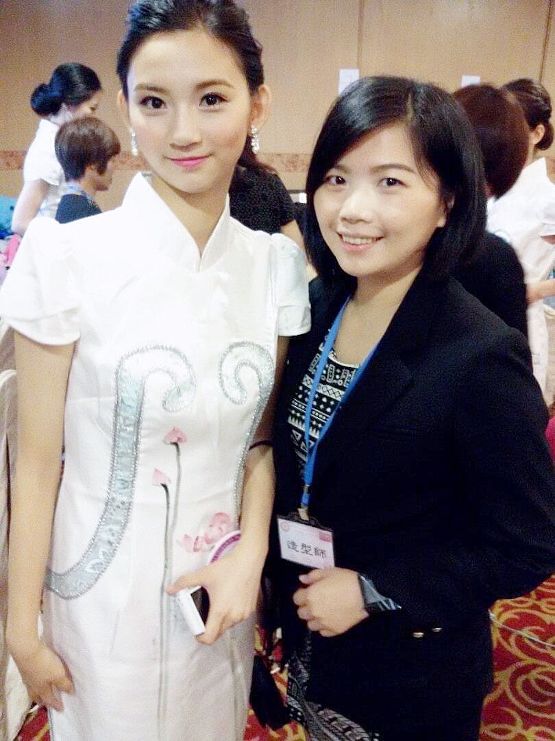 比賽現場後台梳化 : 林雅萍 老師